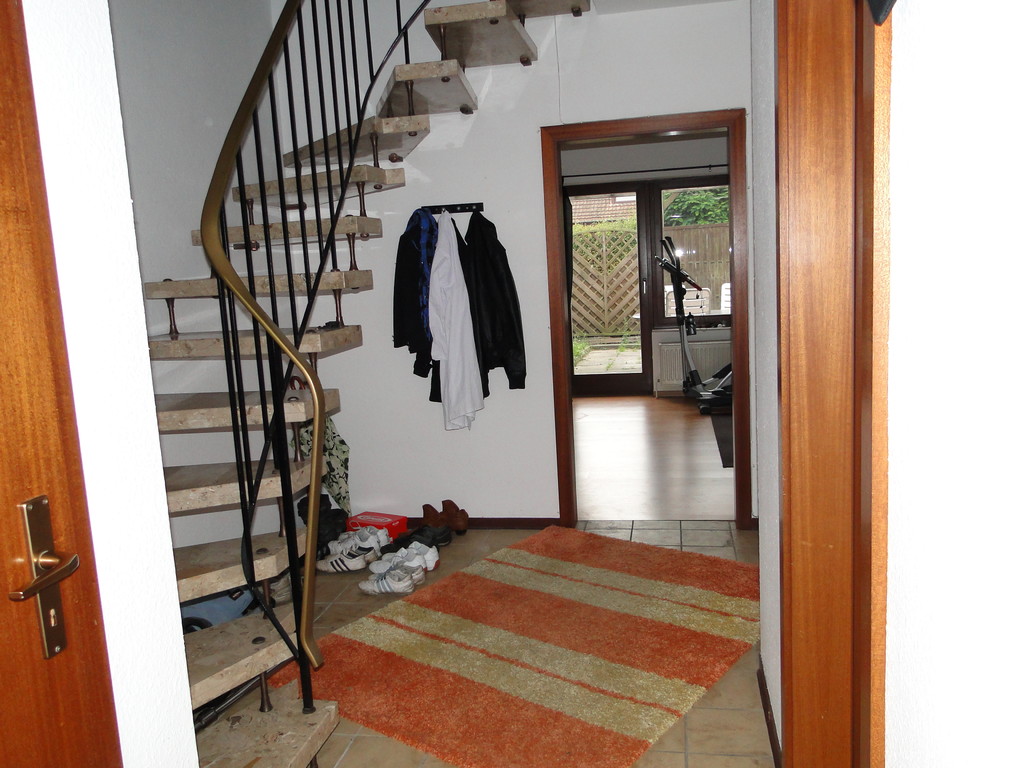 Tageslicht-Gäste-WC runden im Erdgeschoss das Raumkonzept ab. Vom geräumigen Flurbereich, Boden gefliest, führt eine Marmortreppe in den oberen Wohnbereich.