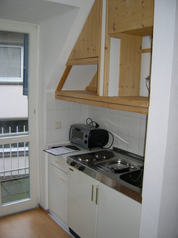 1-Zimmer-Appartement mit Pantry- Küche, (2-Platten Herd, Oberschrank, Unterschrank mit Kühlschrank, Kleiderschrank). Zur Wohnung gehört ein kleiner Kellerraum.